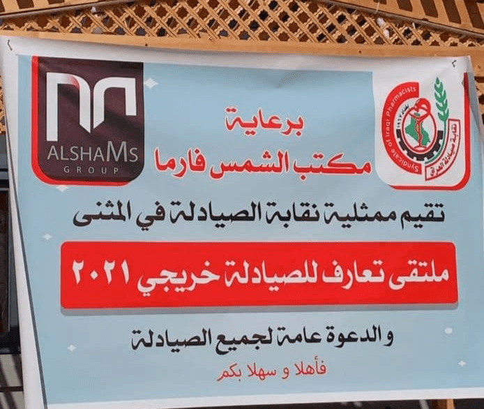 In collaboration with syndicate of pharmacists , Al-Shams Pharma Scientific Bureau sponsored event for newly graduated pharmacists in Al-Muthana province.